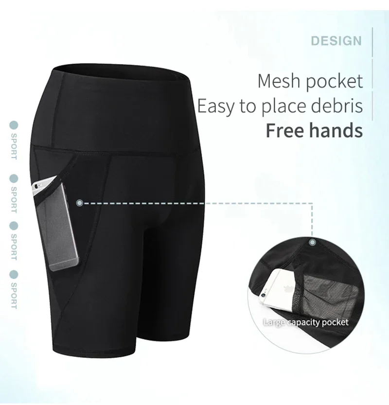 2023 Summer Gym Shorts Women High Waist Compression Quick Dry Yoga Shorts femme Fitness Running Push Up Shorts Pockets Design