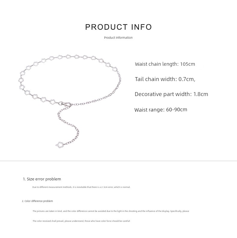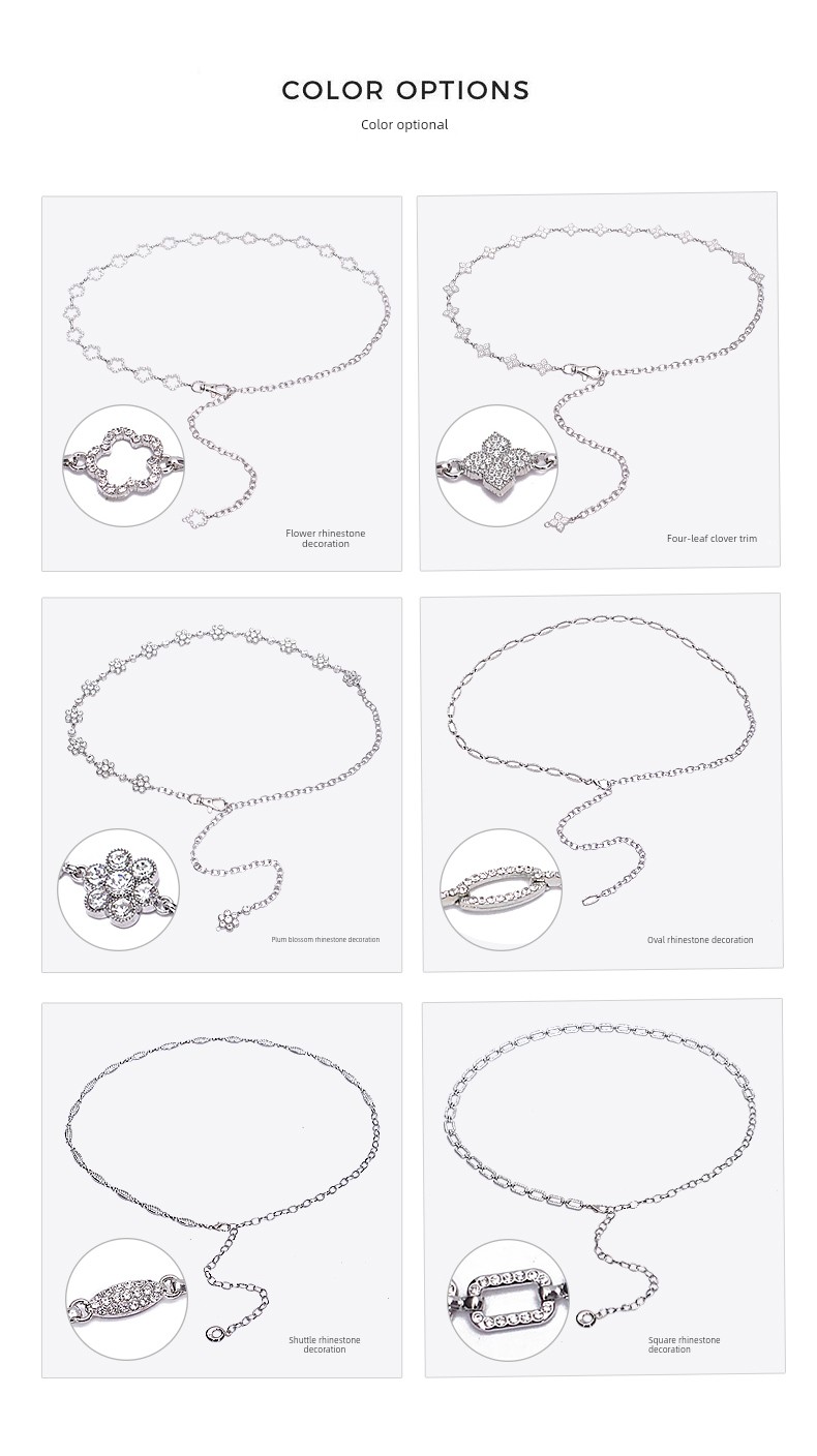 Belt Women's Rhinestone Ornament Chain Waist Chain Accessories with Skirt Dress Waist-Tight Summer Thin and Simple Silver Fancy