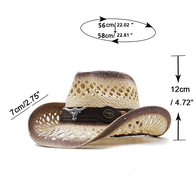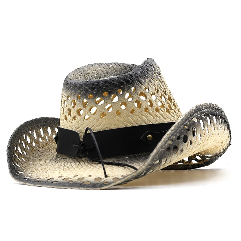 New Cowboy Hat Women Men Retro Raffia Straw Hats Summer Sun Hat Outdoor Sunshade Beach Hat Western Sombrero Panama Hat