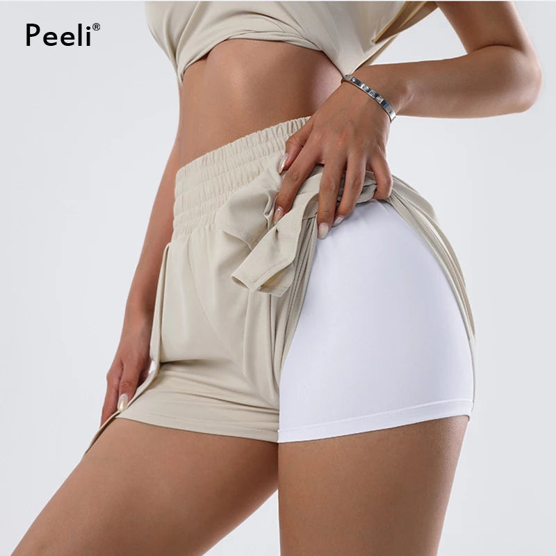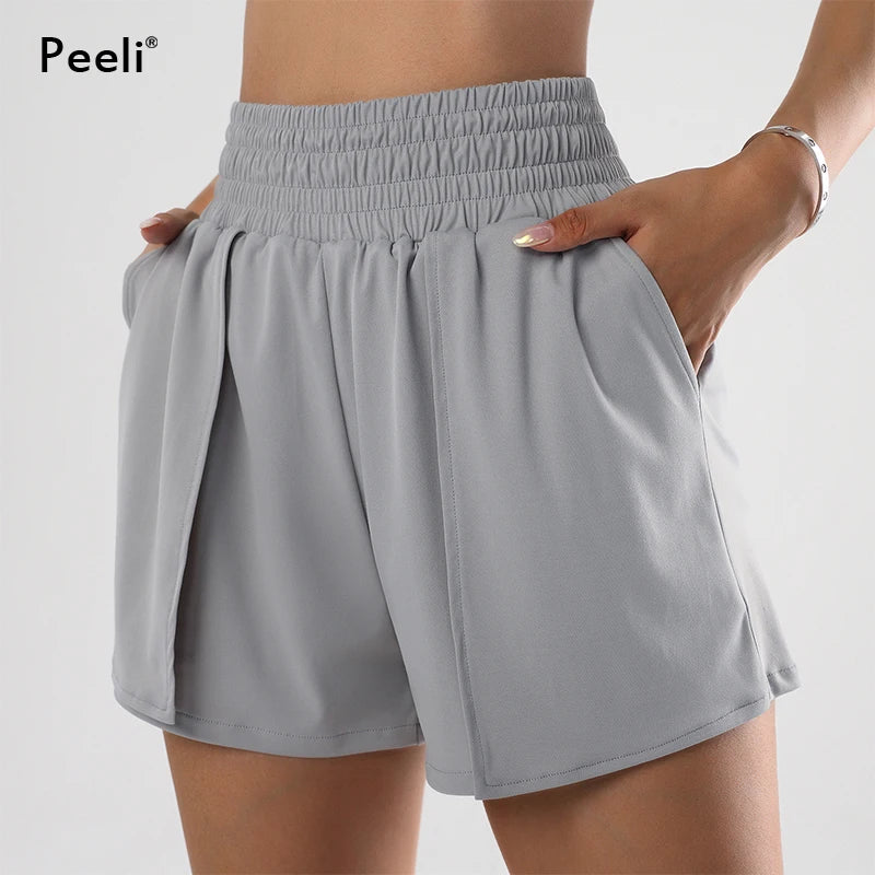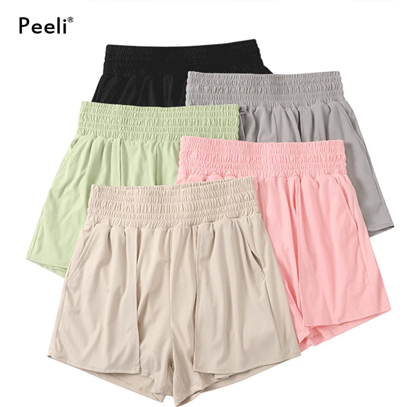 Spandex Sports Shorts with Phone Pockets Loose Yoga Shorts Women Clothing High Waist Gym Shorts Athletic Workout Leggings Woman