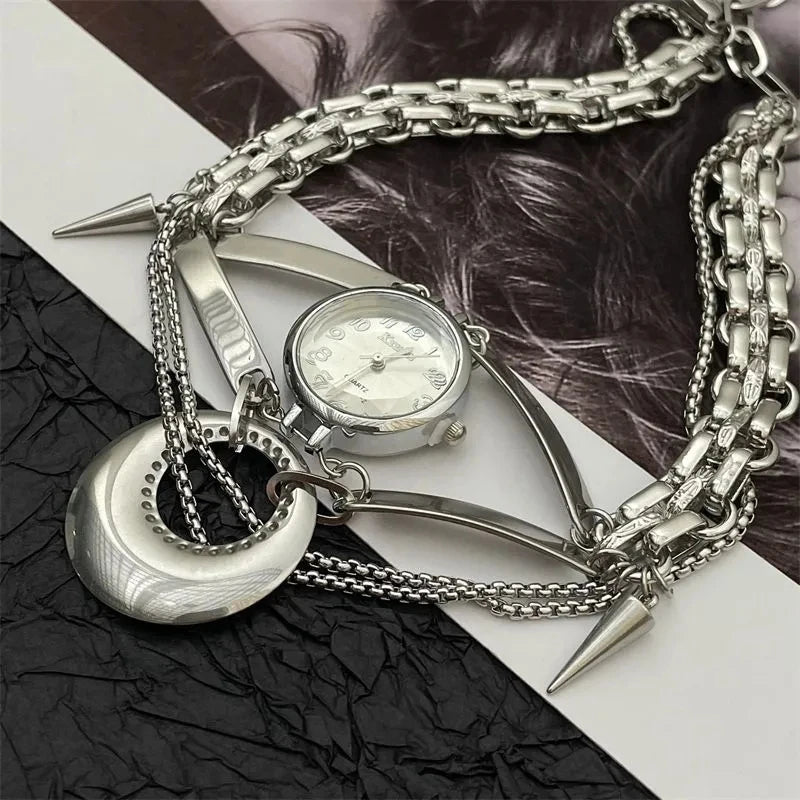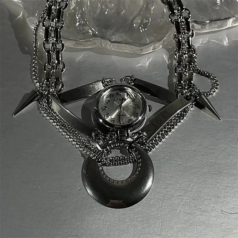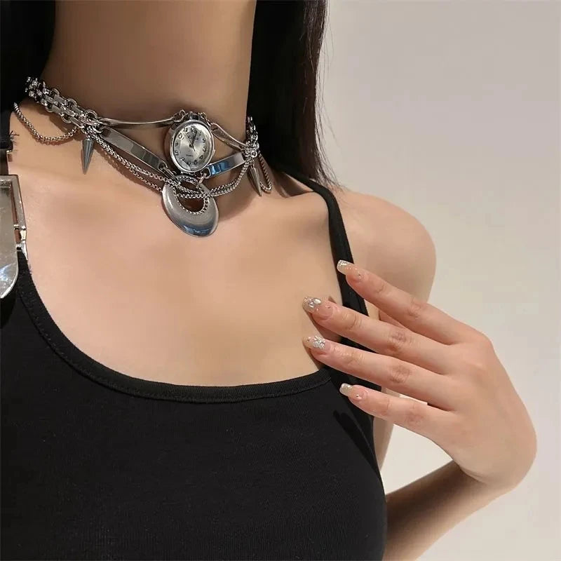 Trend Round Clock Choker Tassel Willow Nail Personality Vintage Necklace Fashion Men's And Women's Neck Jewelry Accessories