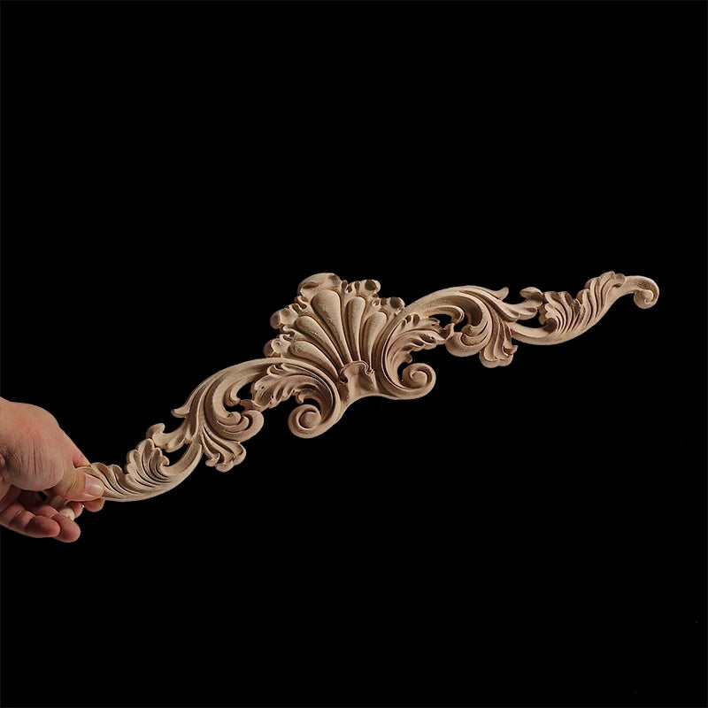 Wood Figurines Onlay Wood Applique Wood Decal Decor Antique European Long Large Floral Wooden Furniture Cabinet Walls European