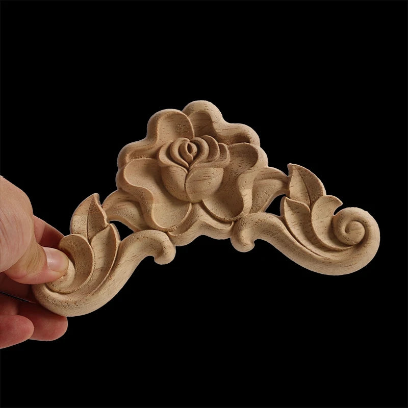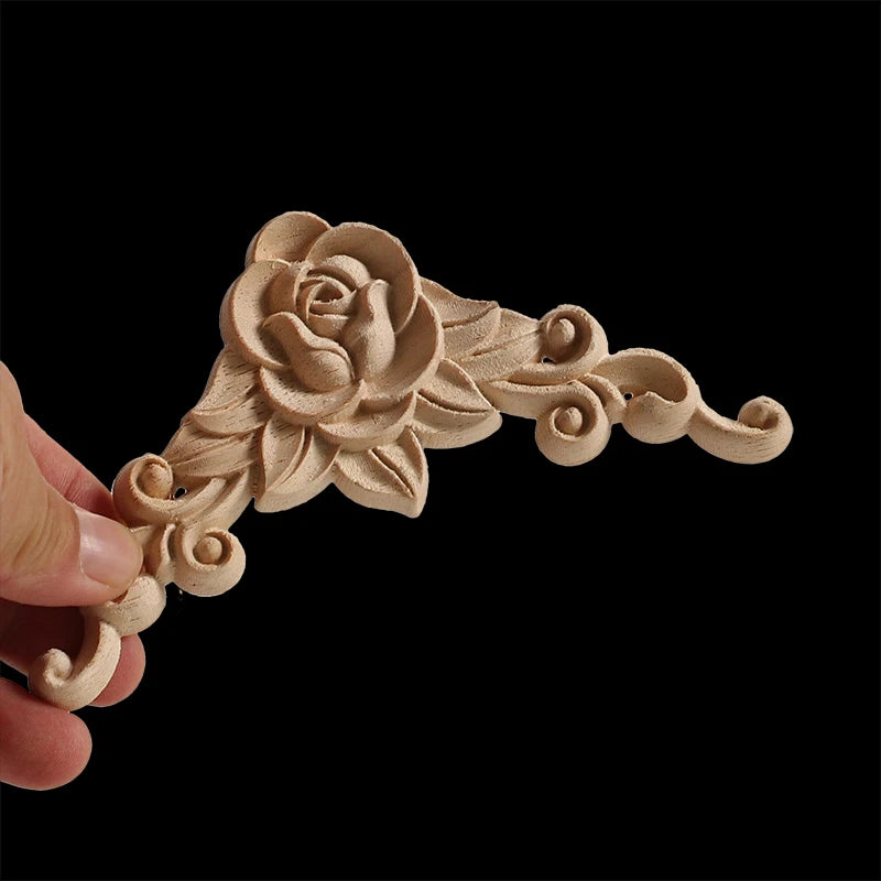 Carving Lines Wood Applique Wood Decal Onlay Unpainted Ornamental European Long Rose Flower Rubber Wood Corner Walls Furniture